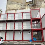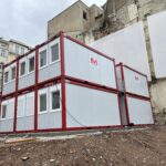 Na dočasnou dobu jsme dodali 34 kontejnerů pro 60 zaměstnanců. Jednací místnosti, šatny, socáální zázemí. 3 patra včetně schodiště a podest.